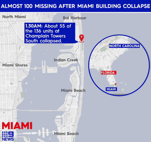 The shocking collapse of a miami tower block has resulted in 99 missing people and at least one death, according to officials.